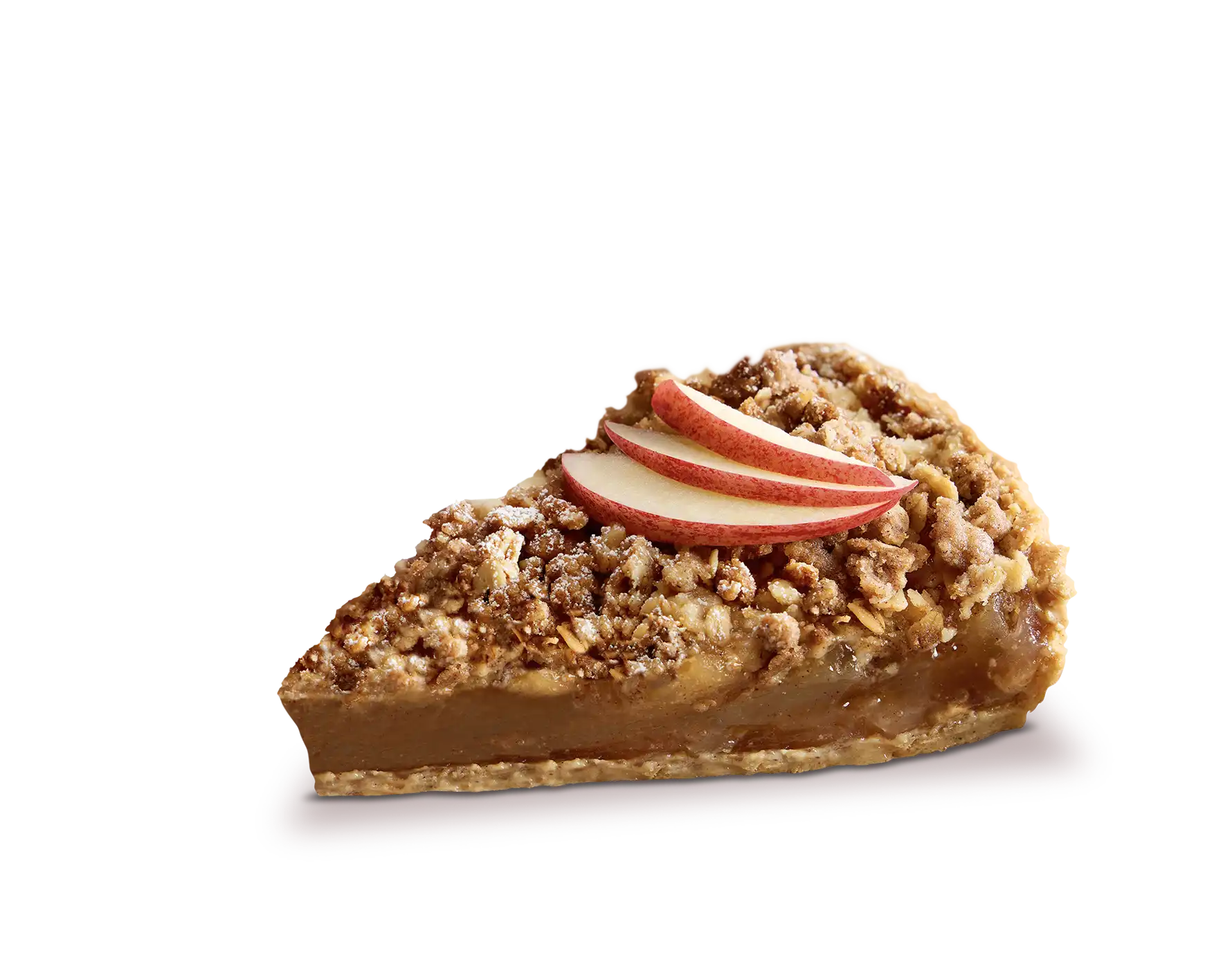 Apples baked in a graham crust with cozy chai spices (cinnamon, cardamom, ginger) and topped with a buttery oat crumble and powdered sugar.